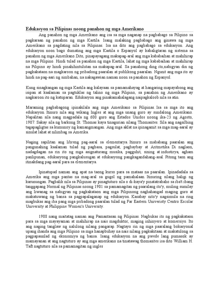 Doc Edukasyon Sa Pilipinas Sa Panahon Ng Mga Amerikano Dureza Teric Academia Edu