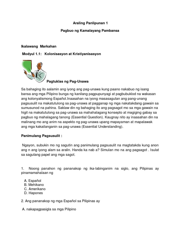 Araling Panlipunan 1 Ikalawang Markahan Module 1