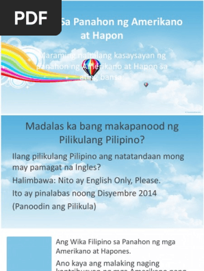 Wikang Pilipino kasaysayan ng Pilipinas. View PANAHON-NG-HAPONpptx from CIS MISC at Cebu Normal University. Pinasok ng mga Hapon ang Maynila sa Enero 2 1942.
